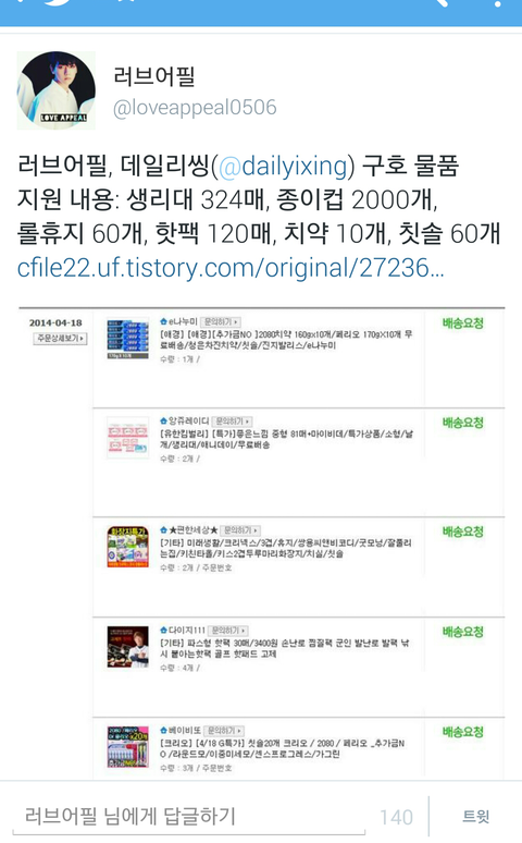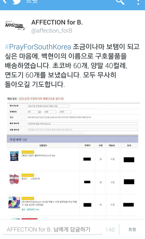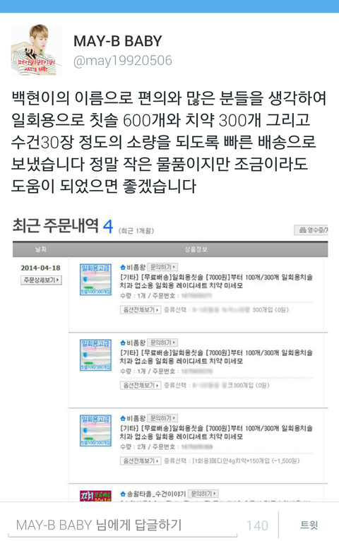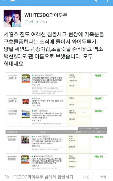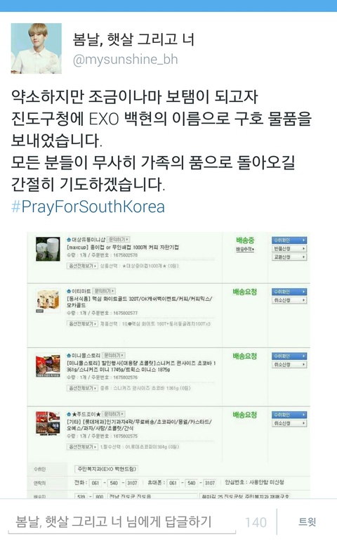 나도 백현이 이름으로 종이컵이랑 커피믹스랑 생리대보내려고..........좋은일에 참여하는거니깒ㅎㅎㅎ다른멤버들 이름으로도 많이 지원했던데ㅜㅜㅜㅜㅜㅜㅜㅜㅜㅜ진짜 모두다 무사하고 마음잘전달되길
