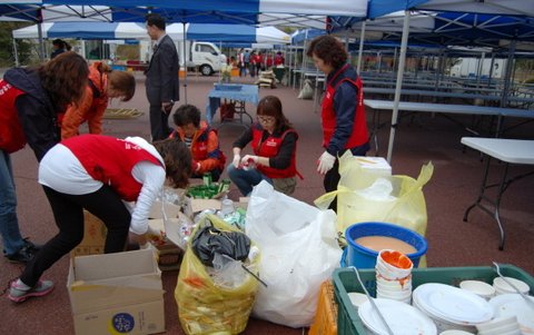 하나님의교회 안증회 성도들은 행사를 마친 체육관과 식사가 마련되었던 행사장에 발생한 쓰레기를 미리 준비한 수거용 봉투를 들고 행사장을 구석구석을 다니며 바닥에 버려진 캔, 종이컵, 음식쓰레기 등 각종 오물들을 주워 처리하는 등 궂은 일을 마다않고 이날 자원 봉사를 활발하게 진행했습니다.