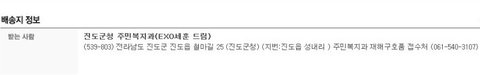 세훈이 이름으로 오늘 보냈구 담주 월요일에도 보낼 예정이래. 어떤 훈녀는 개별적으로도 보냈구
