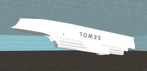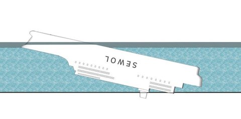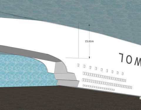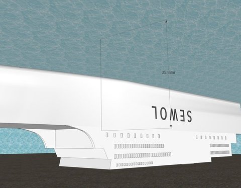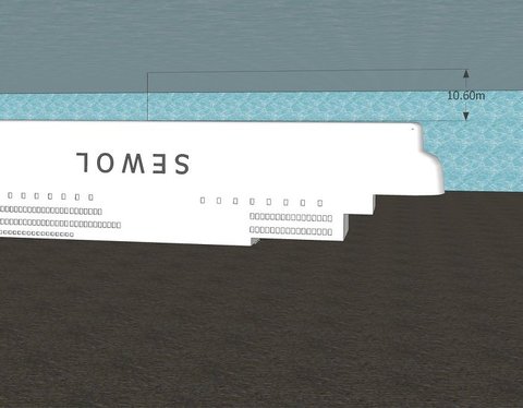 옆에서 보는 모습입니다. 바다의 깊이는 뉴스에나온 37m로 했습니다...