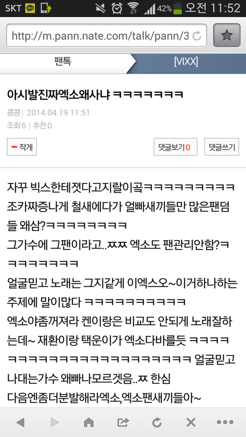 빅스팬들이욕올림팬톡드가서욕해줘라골빈년