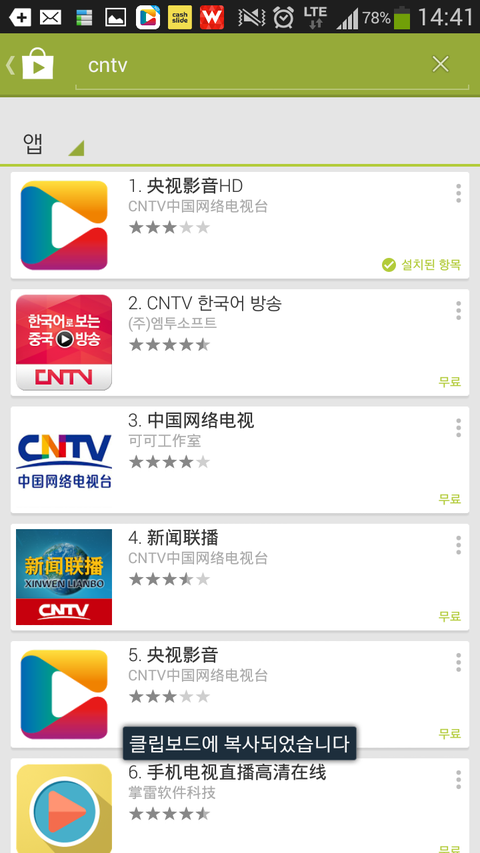 앱까는곳에서 cntv를친다