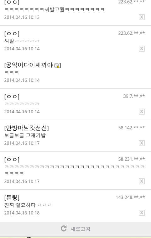 세월호 희생자들을 놀림거리로 만들면서 자기들끼리 놀고있어 ㅅ발.....