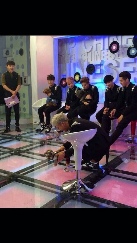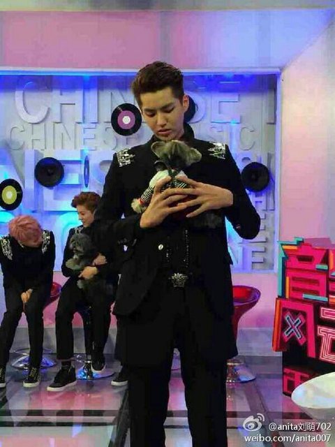 크리스뒤에 루한이가 들고 있는 강아지 쳐다보는거봐ㅋㅋ