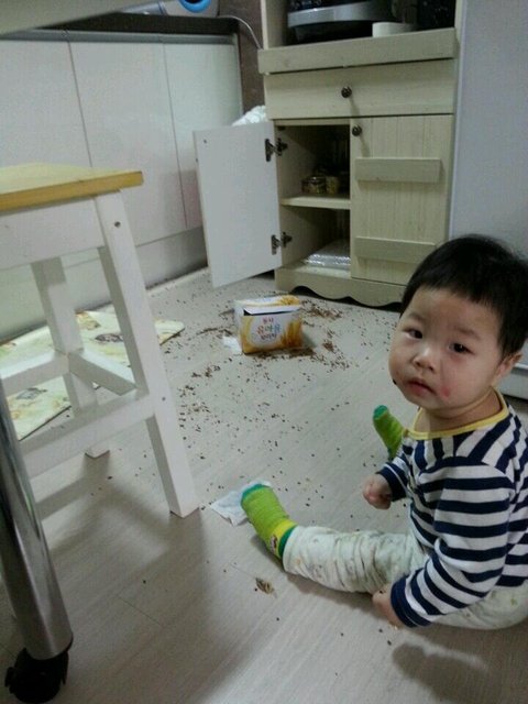 ㅋㅋㅋ제대로 엄마 뒷목잡게했네..저땐 분노게이지가 마구마구 솟아도 방긋 웃으며 아장거리고 걸어오는 아기를 보면 어느새 분노가 사르르 사라지죠~엄마 청소 화이팅~ㅋㅋ