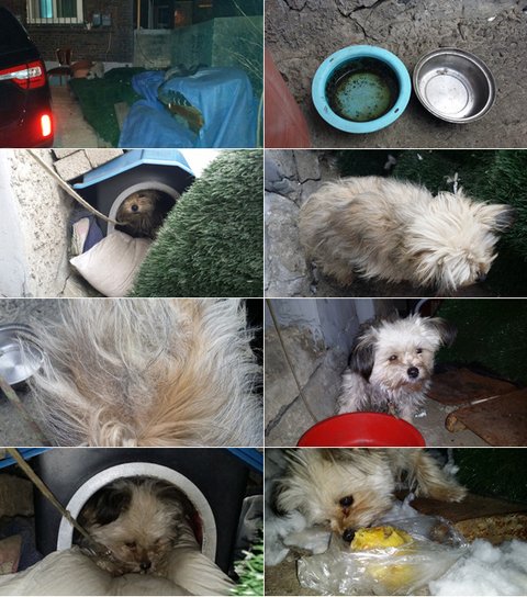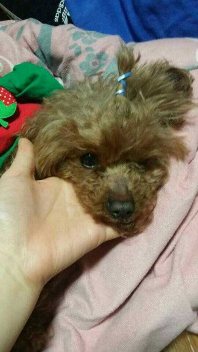 앙상하게 말라있는 푸들아이 초췌한 모습이 그동안의 고된 삶이 보여졌습니다.