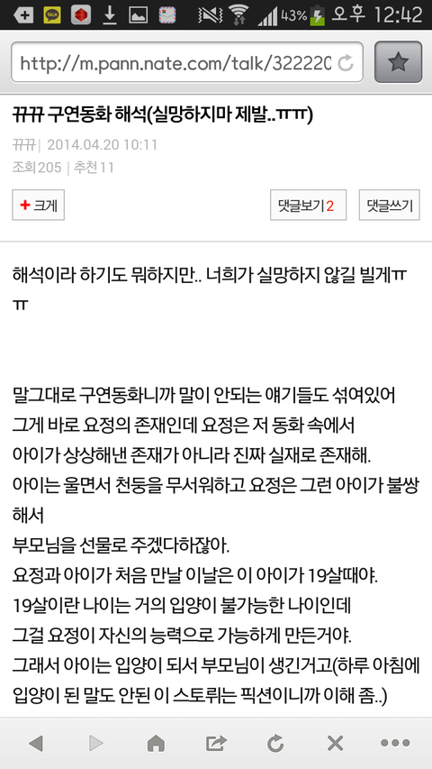 아침에 애들 성형어그로 싫다고 도배하면서 쓴 동화래