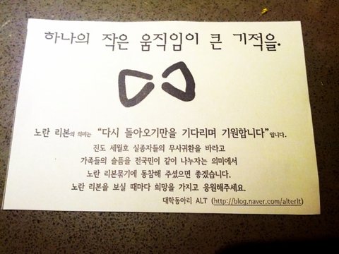 노란리본의 의미는 그 어떤 정치적인 의미도, 그 어떤 사상적인 의미도 없이