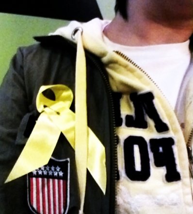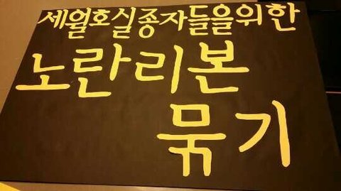 긴 말할 것 없이, 진도 여객선 세월호 침몰 사고에서 이미 하늘로 간 모든 분들, 아직도 바다에서 누군가의 손길을 애타게 기다리며 숨을 붙잡고 있는 분들, 그리고 그 분들의 가족들 모두께 대한민국 국민으로서 우리 모두 마음을 모으자는 의미로, 노란리본을 달기로 했습니다.