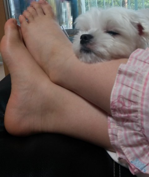 발도 베고 자요...
