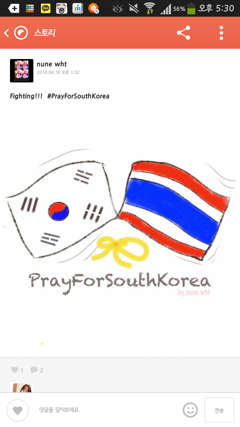 내친구중에 태국에 한명있는데 세월호사건터지고 카톡왔는데 우리나라위해기도하겠다고ㅠㅠㅠ 고맙다진짜... 고마워요태국♥