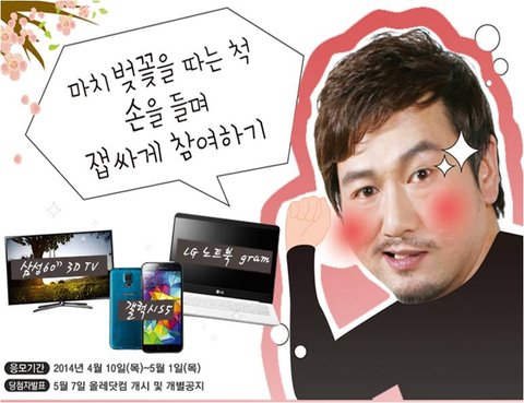 빡! 끝! 하더니 여기저기 많이 나오네ㅋ나도 KT 스맛폰이긴 한데 아빠가 아직까지 스크 폴더폰 사용ㅋㅋㅋ조윤호 캐릭터 웃겨서 보다가 솔까 경품이 탐나니깐 참여해봄ㅋㅋhttp://event.olleh.com/event_ing/event_view.asp?uid=2895