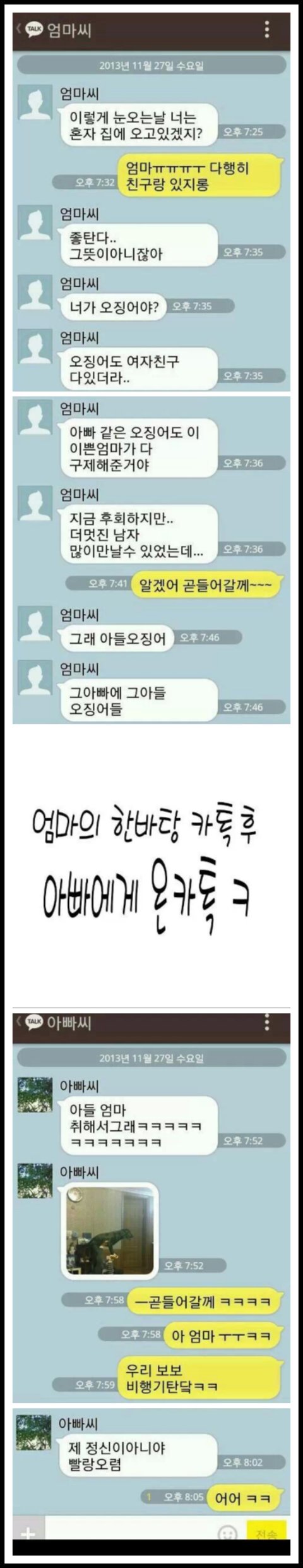 저런 엄마가 아들 결혼하면 며느리에게 그렇게 감사해한다. 우리집 작은오징어 거두어줘서 너무 고맙다면서..