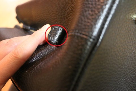 스티치 처리된 모든 부분이 이런 상태예요. 가죽이 터져있어요.