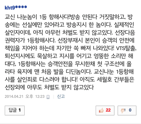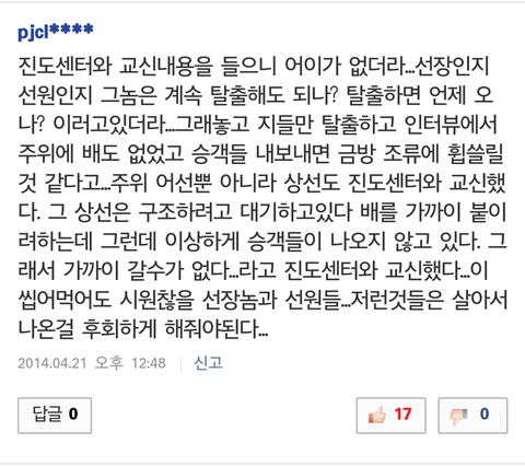 국민모두가 원하는건 무책임한 선박직 선원들의