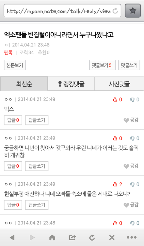 뀨뀨년 빅스팬년 엓톡에서 다 꺼져 ㅅㅂ