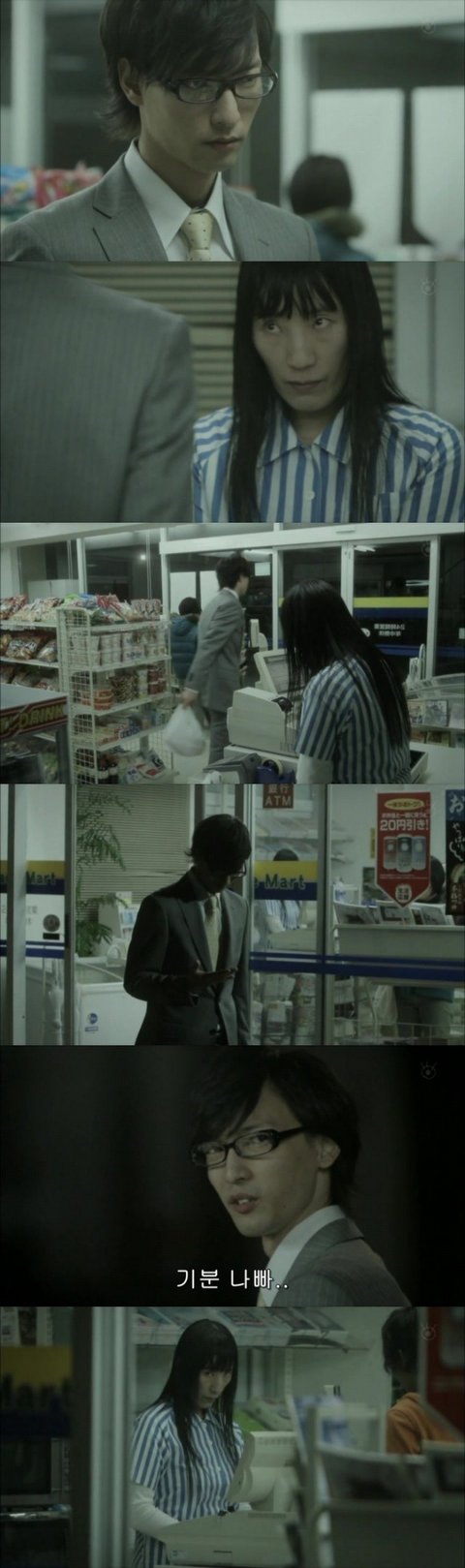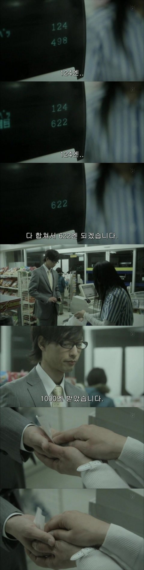 그런데 남자가 돈을 건내고 잔돈을 받는데 편의점 여자가