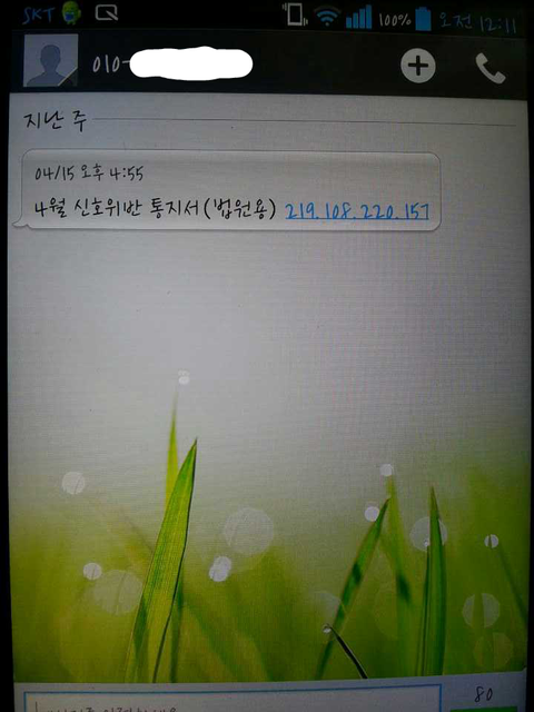 그래서 저 주소를 클릭했고, 아무래도 악성코드가 깔려, 동생번호로 여기저기 비슷한류의 문자가 발송되고 있는거 같습니다.
