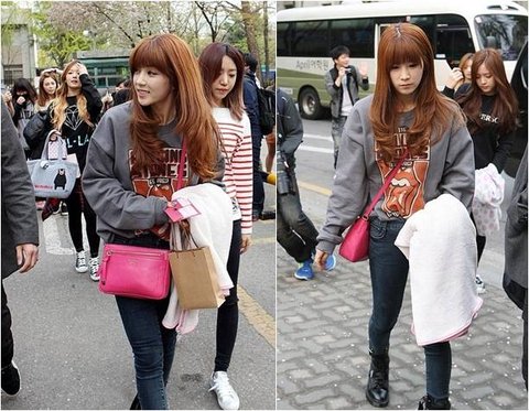 최근 음악방송 출근길에서도 내추럴한 룩에 핫핑크 헤리엇백으로