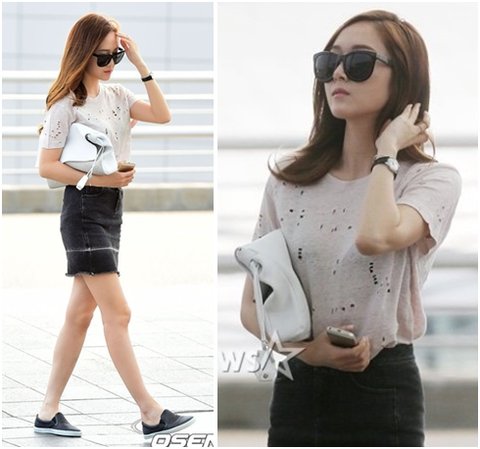 편안한 룩에 엣지있는 지미추 클러치와 슬립온 신었는데