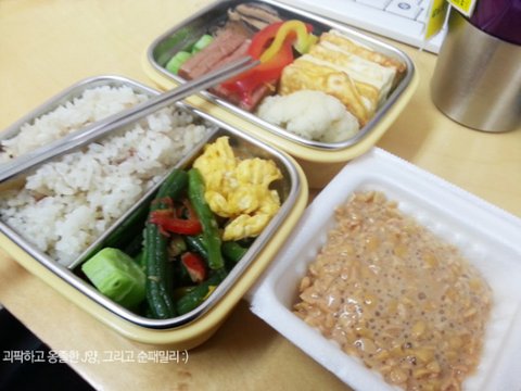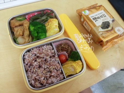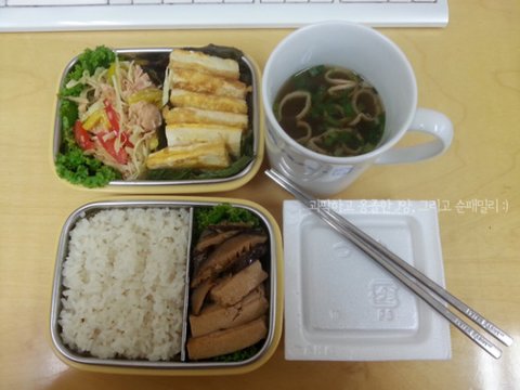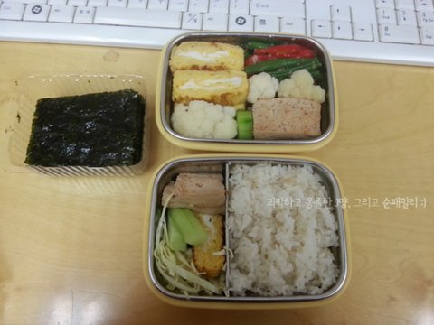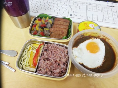 밥만 아침에 밥통에서 퍼서 가져가는 식으로 도시락을 쌋습니다.