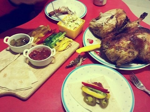 같이 곁들인건 또띠아와 콘슬로우 그리고 파프리카외 야채들