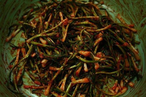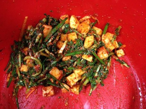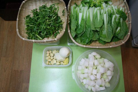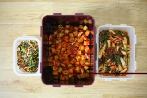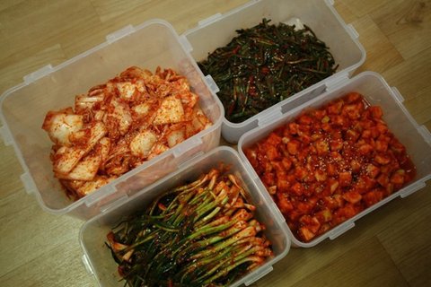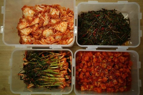배추생김치 , 부추김치 , 파김치 , 깍두기