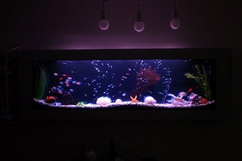조명 끄고 벽걸이수족관~~ 열대어 키움!!