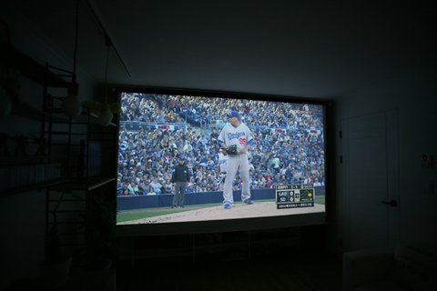 빔프로젝터+150인치 스크린으로 야구시청,영화나 애니도 보고..