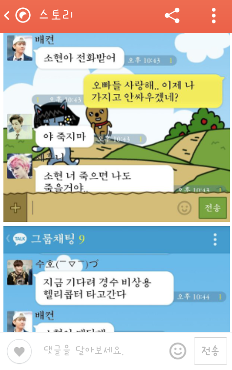 위사진과 같음 그리고 따른사진도 조카많음 카스에 엑소팬이 세월호로 드립치고 논 카톡도잇고 ㅋㅋ