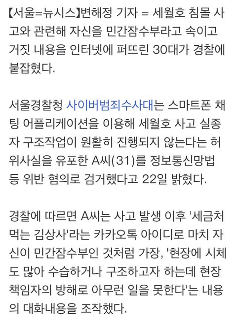 자기가 민간잠수부인척하고 카톡으로