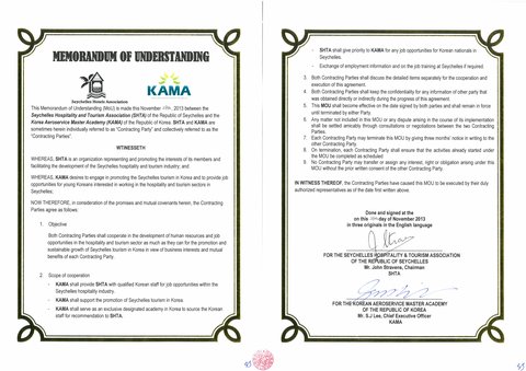 앞으로 카마아카데미는 세이셸 관광협회에 독점적으로 우수한 한국 인적 자원을 제공하고,