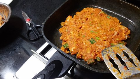 그 전날 알리올리오 만행으로 인해 미안해진 저는 진심으로 누나를 위해 만들었습니다. 약간의 복수하는 마음으로 금주하는 누나를 위해 술 안주 위주로 만들었죠...ㅋㅋㅋ 김치전 만드는걸 가르쳐 달라는 누나에게 이거넣고 저거넣고 비비고 구워라고 이렇게 보여주니 ... 짜증냅디다..
