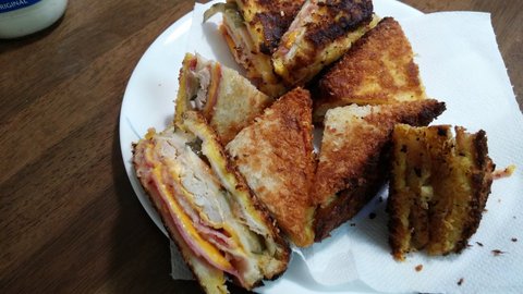 이 날의 하이라이트... 몬테크리스토 ㅎ 튀기기 힘들어 빵가루로 만 살짝 튀겼지만, 누나가 진심으로 엄지를 올려주더라구요 그 뿌듯함이란 ㅋㅋ