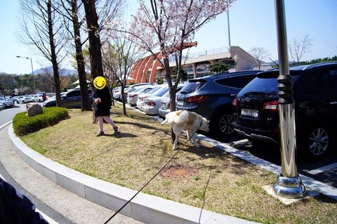 애견공원에 왔어요. 주차하고 내리자 마자 시원하게 쉬부터 하네요.