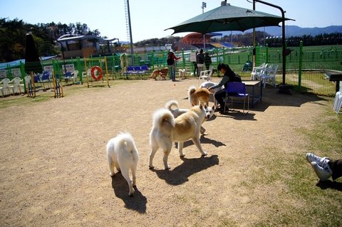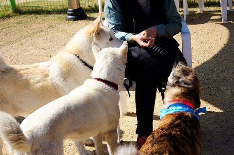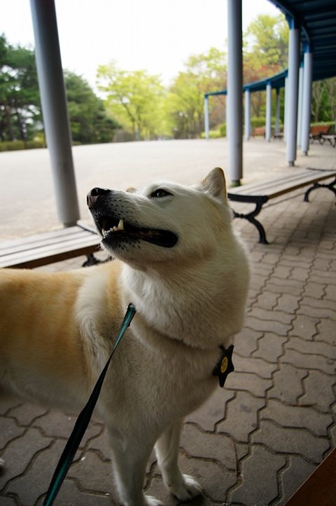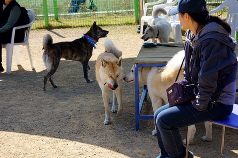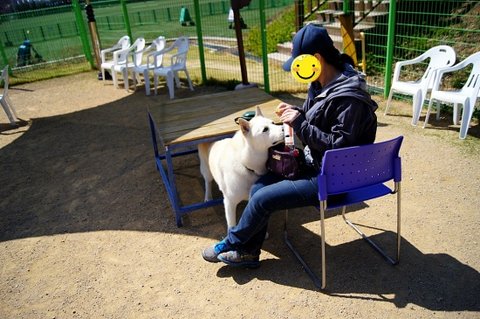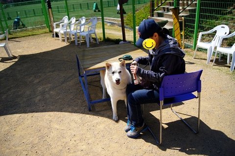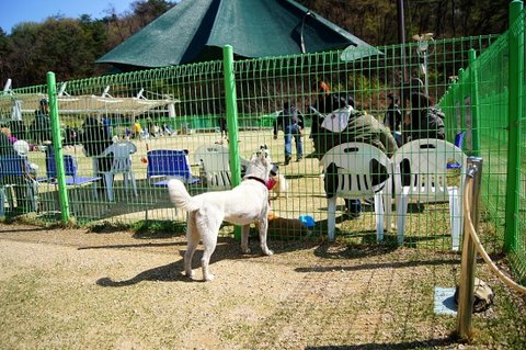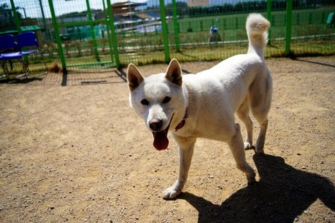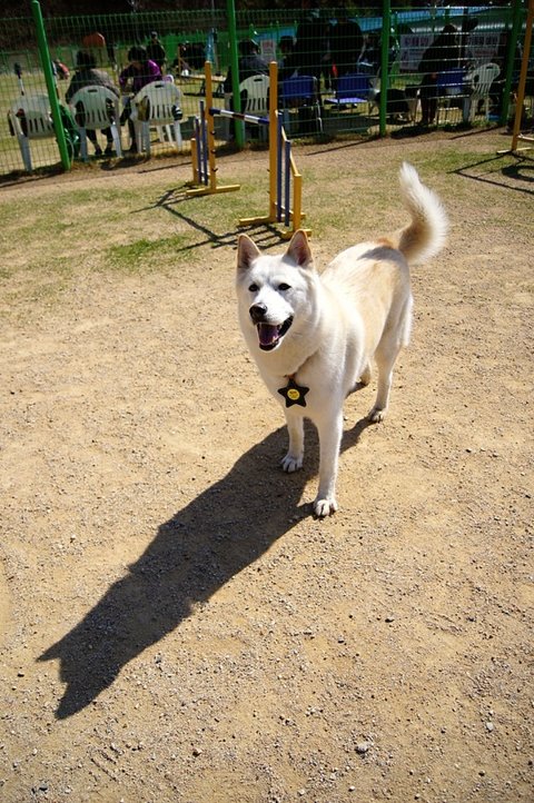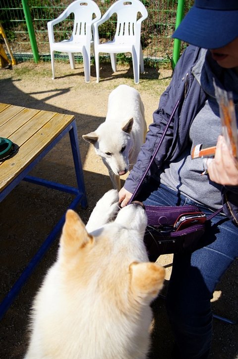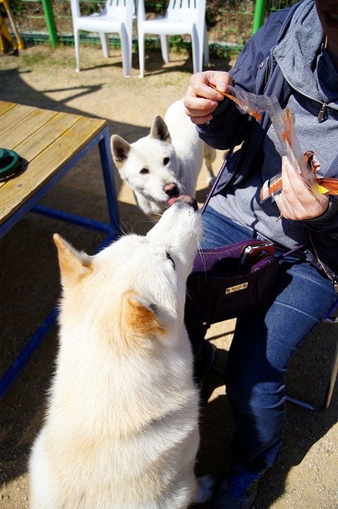 백구는 간식쟁이..ㅋㅋ 울타리 너머 소형견운동장에 있는 분들께 눈빛보내고 있네요