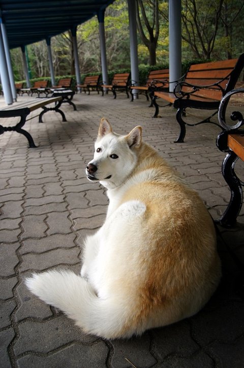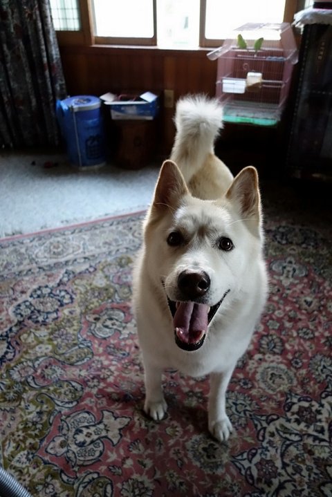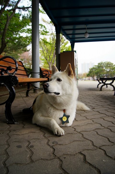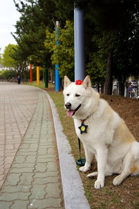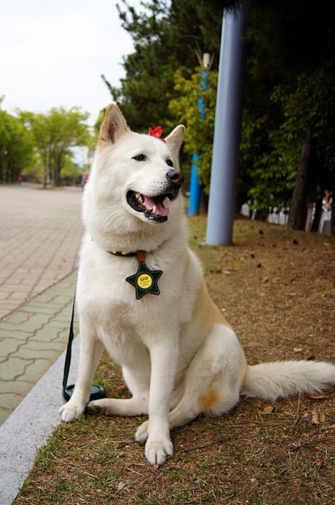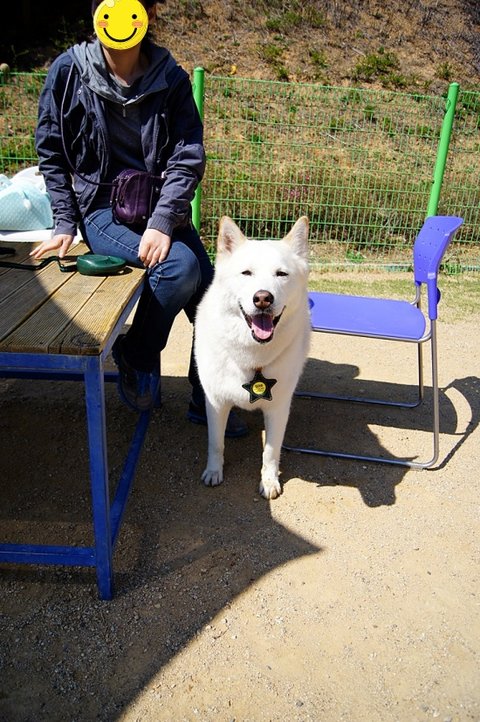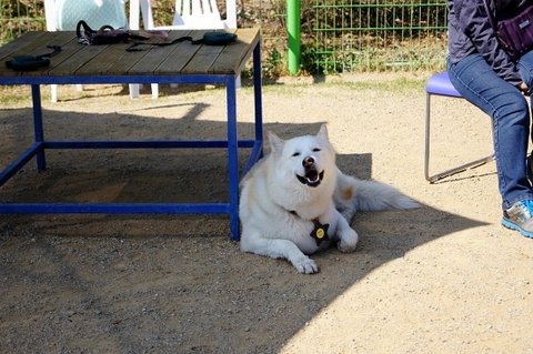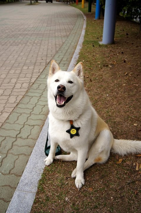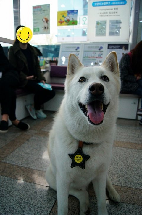 아까 간식 줬다고 더 친절한 미소를 보여주는 백구