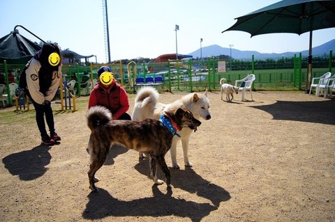 애견공원에 오면 이렇게 다른 아이들과 함께 뛰어놀수 있으니