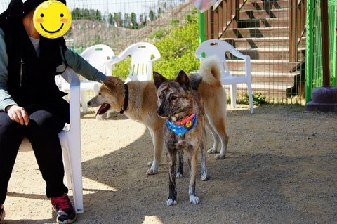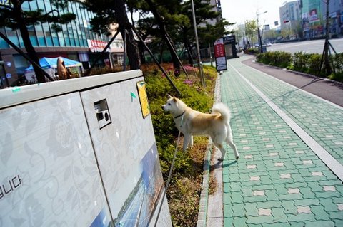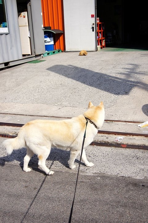 제 바지에서 심바 냄새 나니까 킁킁 거리고 있어요.ㅎㅎ 황구도 잘생겼어요.