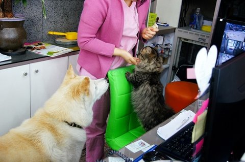동물병원에 놀러왔는데.. 심바를 상근이라고 부르시는 식당 아주머니께서