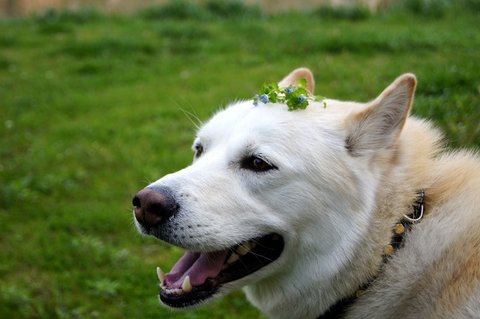 풀밭에서 머리에  꽃 올리고 헤헤~~