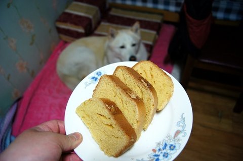 밤에 출출해서, 만들어 놨던 빵을 잘라왔어요