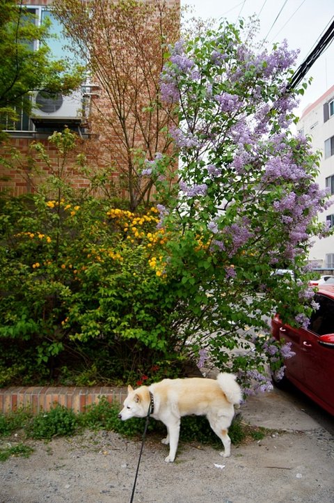 집에 가는 길에 라일락 나무에 영역표시를 하고 있어요