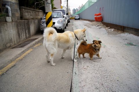 진돗개 황구와 심바, 진돗개들은 보통 심바보다 많이 작은데 저 아이는 덩치가 좋은 편이었어요