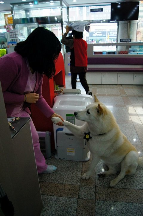 애견용품점 들려서 간식 얻어먹고 있는 심바