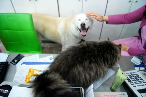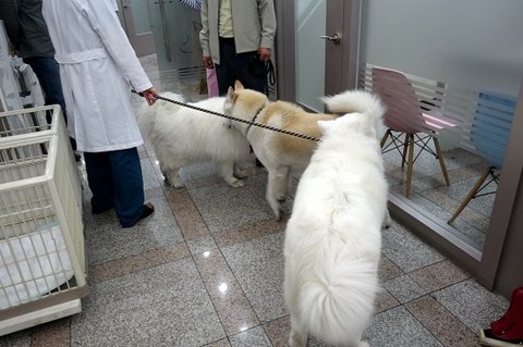 동물병원에도 놀러갔는데 사모예드 친구 두마리를 만났어요.ㅎㅎ