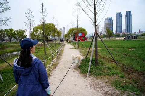 동생이랑 심바데리고 태화강 대공원에 산책 나왔어요