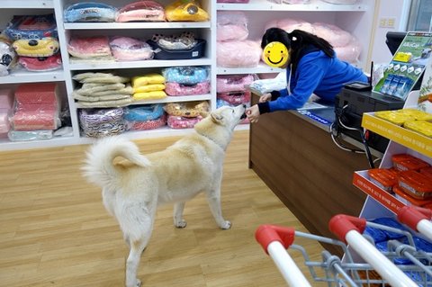 ㅋㅋ 애견용품점에서 마구 마구 돌아다니고 있어요.ㅎㅎ