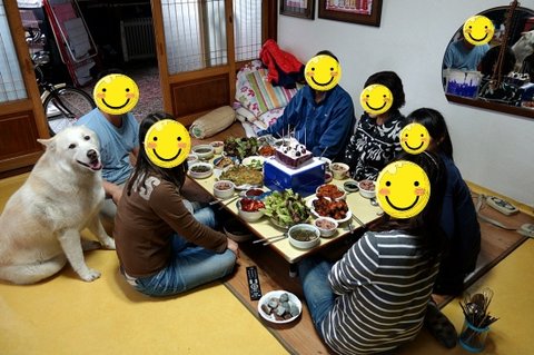 한상 가득 차리고..ㅋㅋ 생신 축하드리면서 심바도 한자리 차지하고 앉아있어요.ㅋㅋ