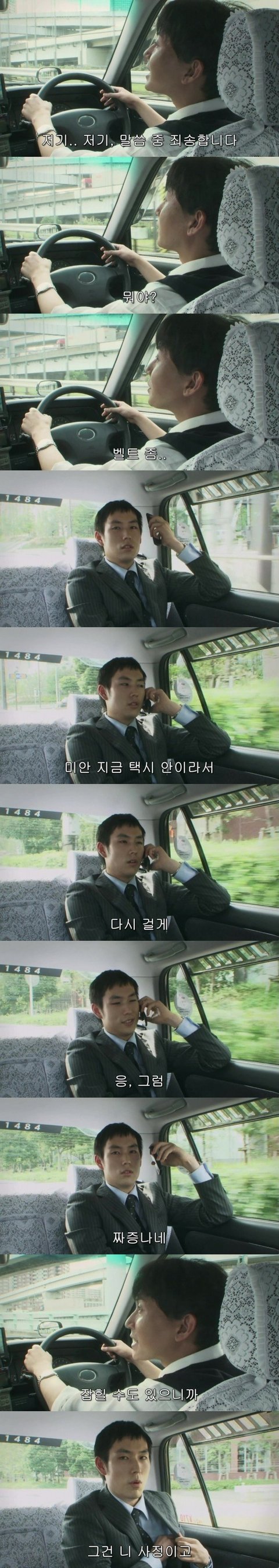 착한 택시기사 아저씨는 못들은척하고 운전을 계속 합니다